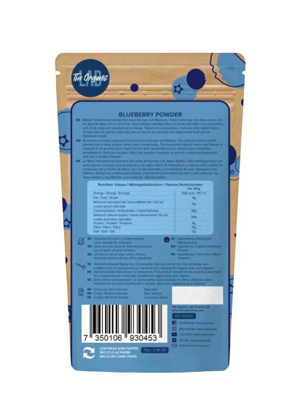 Ovaj organski prah od borovnica, ne samo da će tvojoj hrani dati tamnoljubičastu boju i ukusan slatko-kiseli okus, već će ti pružiti i sve hranjive prednosti borovnica (bez potrebe da ih sam/a bereš)!