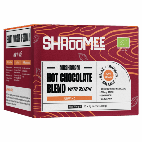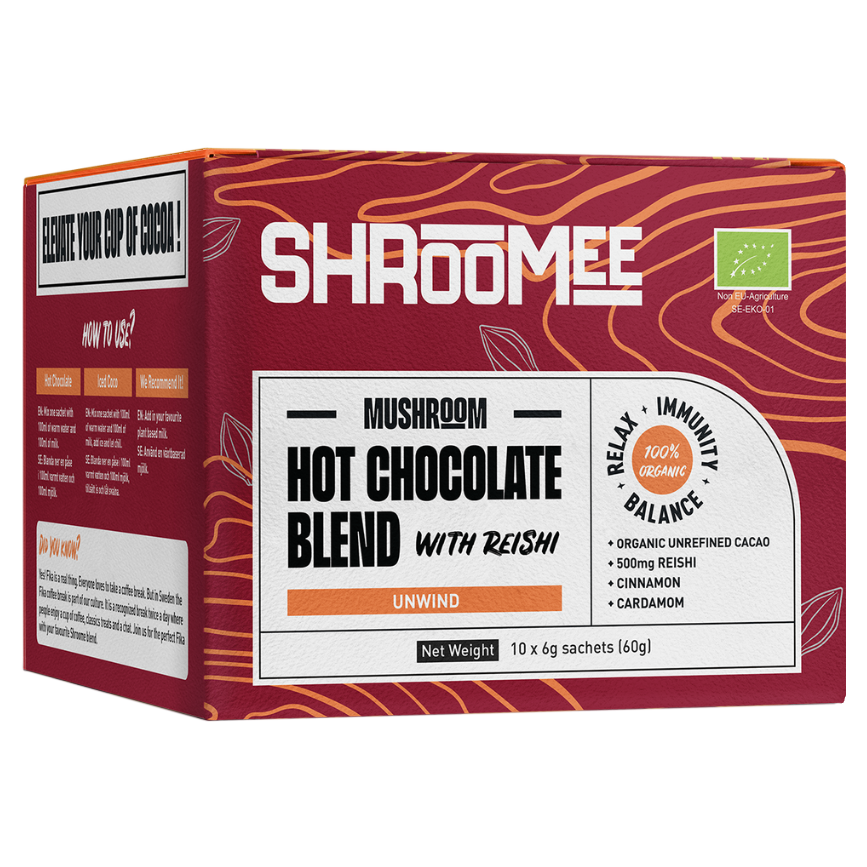 Ušuškaj se uz Shroomee vruću čokoladu s Reishi gljivom – utješno, organsko piće koje spaja nerafinirani kakao, reishi gljivu i zagrijavajuće začine poput cimeta i kardamoma.