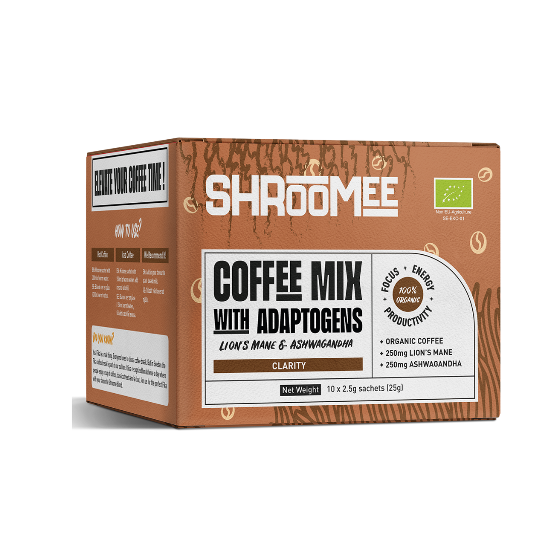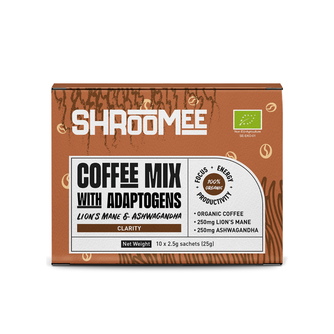 Razbistrite svoj um i ostanite usredotočeni. Fina organska instant kava pomiješana s Lavljom grivom i Ashwagandhom.