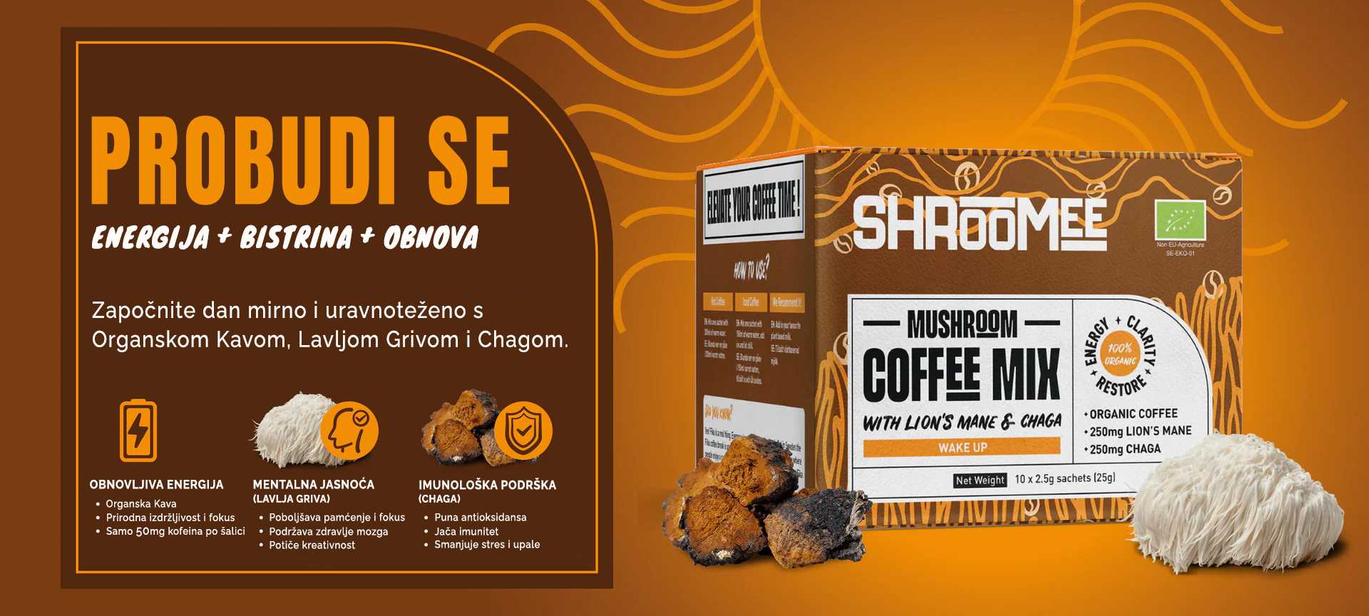 Organska mješavina kave s lavljom grivom, chagom i kordicepsom